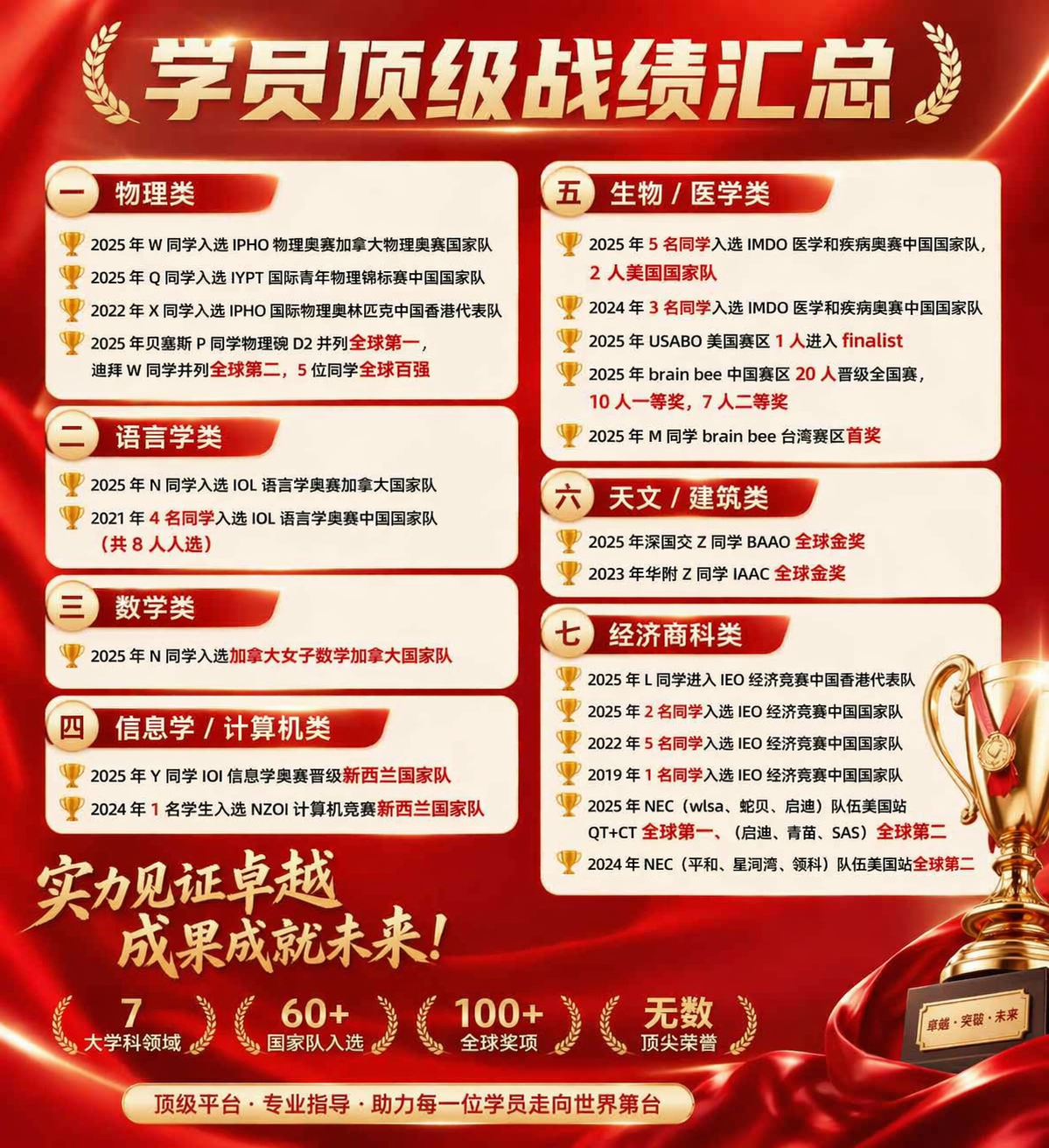 0门槛,零基础可参赛,文理科都能参赛!提升思维能力。参与IOL学术活动还可以让学生与来自全球的高中生交流与学习,拓展社交圈与眼界,结交志同道合的伙伴。